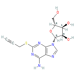 | SMILES | C#CCSc1nc(N)c2ncn([C@@H]3O[C@H](CO)[C@@H](O)[C@H]3O)c2n1 |