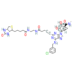 | SMILES | CNC(=O)[C@@]12C[C@@H]1[C@@H](n1cnc3c(NCc4cccc(Cl)c4)nc(C#CCCC(=O)NCCNC(=O)CCCCC4SCC5NC(=O)NC54)nc31)[C@H](O)[C@@H]2O |