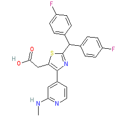 | SMILES | CNc1cc(-c2nc(C(c3ccc(F)cc3)c3ccc(F)cc3)sc2CC(=O)O)ccn1 |