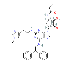 | SMILES | CCC(=O)N[C@H]1C[C@@H](n2cnc3c(NCC(c4ccccc4)c4ccccc4)nc(NCCc4cn(CC)cn4)nc32)[C@H](O)[C@@H]1O |