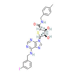 | SMILES | Cc1ccc(CNC(=O)[C@H]2S[C@@H](n3cnc4c(NCc5cccc(I)c5)ncnc43)[C@H](O)[C@@H]2O)cc1 |