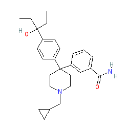 | SMILES | CCC(O)(CC)c1ccc(C2(c3cccc(C(N)=O)c3)CCN(CC3CC3)CC2)cc1 |