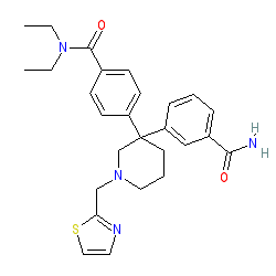 | SMILES | CCN(CC)C(=O)c1ccc(C2(c3cccc(C(N)=O)c3)CCCN(Cc3nccs3)C2)cc1 |