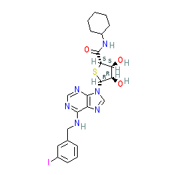 | SMILES | O=C(NC1CCCCC1)[C@H]1S[C@@H](n2cnc3c(NCc4cccc(I)c4)ncnc32)[C@H](O)[C@@H]1O |