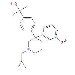 | SMILES | CC(C)(O)c1ccc(C2(c3cccc(O)c3)CCCN(CC3CC3)C2)cc1 |