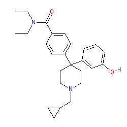 | SMILES | CCN(CC)C(=O)c1ccc(C2(c3cccc(O)c3)CCN(CC3CC3)CC2)cc1 |