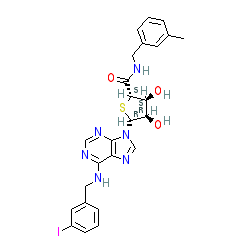 | SMILES | Cc1cccc(CNC(=O)[C@H]2S[C@@H](n3cnc4c(NCc5cccc(I)c5)ncnc43)[C@H](O)[C@@H]2O)c1 |