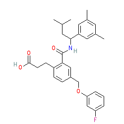 | SMILES | Cc1cc(C)cc(C(CC(C)C)NC(=O)c2cc(COc3cccc(F)c3)ccc2CCC(=O)O)c1 |
