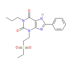 | SMILES | CCCn1c(=O)c2[nH]c(-c3ccccc3)nc2n(CCS(=O)(=O)CC)c1=O |