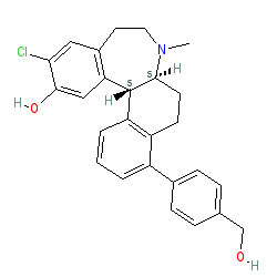 | SMILES | CN1CCc2cc(Cl)c(O)cc2[C@H]2c3cccc(-c4ccc(CO)cc4)c3CC[C@@H]21 |