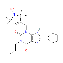 | SMILES | CCCn1c(=O)c2nc(C3CCCC3)[nH]c2n(CC2=CC(C)(C)N([O])C2(C)C)c1=O |