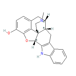 | SMILES | CN1CC[C@]23c4c5ccc(O)c4O[C@H]2c2[nH]c4ccccc4c2C[C@H]3[C@H]1C5 |