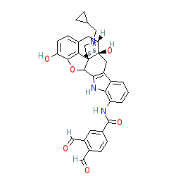 | SMILES | O=Cc1ccc(C(=O)Nc2cccc3c4c([nH]c23)C2Oc3c(O)ccc5c3[C@@]23CCN(CC2CC2)[C@H](C5)[C@]3(O)C4)cc1C=O |
