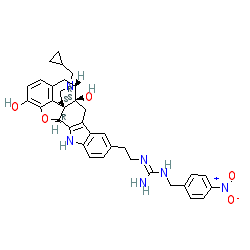| SMILES | N/C(=N\CCc1ccc2[nH]c3c(c2c1)C[C@@]1(O)[C@H]2Cc4ccc(O)c5c4[C@@]1(CCN2CC1CC1)[C@H]3O5)NCc1ccc([N+](=O)[O-])cc1 |