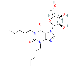 | SMILES | CCCCCn1c(=O)c2c(ncn2C2O[C@H](CO)[C@@H](O)[C@H]2O)n(CCCCC)c1=O |