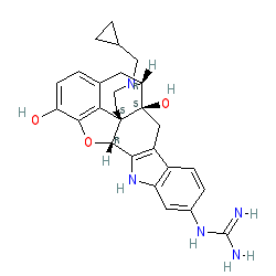 | SMILES | N=C(N)Nc1ccc2c3c([nH]c2c1)[C@@H]1Oc2c(O)ccc4c2[C@@]12CCN(CC1CC1)[C@H](C4)[C@]2(O)C3 |