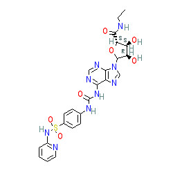 | SMILES | CCNC(=O)[C@H]1OC(n2cnc3c(NC(=O)Nc4ccc(S(=O)(=O)Nc5ccccn5)cc4)ncnc32)[C@H](O)[C@@H]1O |