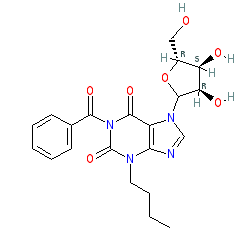| SMILES | CCCCn1c(=O)n(C(=O)c2ccccc2)c(=O)c2c1ncn2C1O[C@H](CO)[C@@H](O)[C@H]1O |