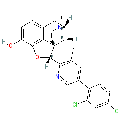 | SMILES | CN1CC[C@]23c4c5ccc(O)c4O[C@H]2c2ncc(-c4ccc(Cl)cc4Cl)cc2C[C@H]3[C@H]1C5 |