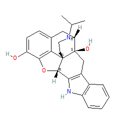 | SMILES | CC(C)N1CC[C@]23c4c5ccc(O)c4O[C@H]2c2[nH]c4ccccc4c2C[C@@]3(O)[C@H]1C5 |