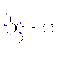 | SMILES | CCn1c(C#Cc2ccccc2)nc2c(N)ncnc21 |