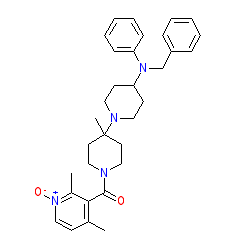 | SMILES | Cc1cc[n+]([O-])c(C)c1C(=O)N1CCC(C)(N2CCC(N(Cc3ccccc3)c3ccccc3)CC2)CC1 |