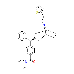 | SMILES | CCN(CC)C(=O)c1ccc(C(=C2CC3CCC(C2)N3CCc2cccs2)c2ccccc2)cc1 |