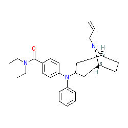 | SMILES | C=CCN1[C@H]2CC[C@@H]1CC(N(c1ccccc1)c1ccc(C(=O)N(CC)CC)cc1)C2 |