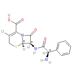| SMILES | N[C@@H](C(=O)N[C@@H]1C(=O)N2C(C(=O)O)=C(Cl)CS[C@H]12)c1ccccc1 |