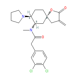 | SMILES | C=C1C[C@@]2(CC[C@H](N3CCCC3)[C@@H](N(C)C(=O)Cc3ccc(Cl)c(Cl)c3)C2)OC1=O |