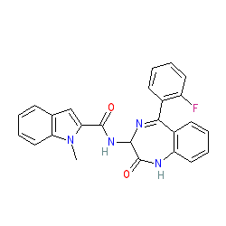 | SMILES | Cn1c(C(=O)NC2N=C(c3ccccc3F)c3ccccc3NC2=O)cc2ccccc21 |