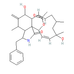 | SMILES | C=C1C(C)C2C(Cc3ccccc3)NC(=O)C23C(OC(C)=O)/C=C\C(C)(O)CC(C)C/C=C/C3C1O |