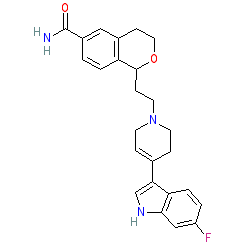 | SMILES | NC(=O)c1ccc2c(c1)CCOC2CCN1CC=C(c2c[nH]c3cc(F)ccc23)CC1 |