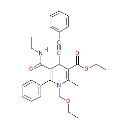 | SMILES | CCNC(=O)C1=C(c2ccccc2)N(COCC)C(C)=C(C(=O)OCC)C1C#Cc1ccccc1 |