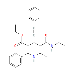 | SMILES | CCNC(=O)C1=C(C)NC(c2ccccc2)=C(C(=O)OCC)C1C#Cc1ccccc1 |