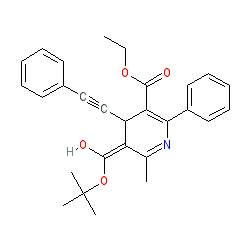 | SMILES | CCOC(=O)C1=C(c2ccccc2)N=C(C)/C(=C(/O)OC(C)(C)C)C1C#Cc1ccccc1 |
