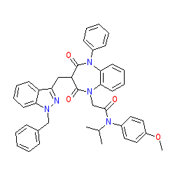 | SMILES | COc1ccc(N(C(=O)CN2C(=O)C(Cc3nn(Cc4ccccc4)c4ccccc34)C(=O)N(c3ccccc3)c3ccccc32)C(C)C)cc1 |