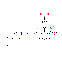 | SMILES | CO/C(O)=C1\C(C)=NC(C)=C(C(=O)NCCCN2CCC(c3ccccc3)CC2)C1c1ccc([N+](=O)[O-])cc1 |