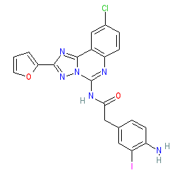 | SMILES | Nc1ccc(CC(=O)Nc2nc3ccc(Cl)cc3c3nc(-c4ccco4)nn23)cc1I |