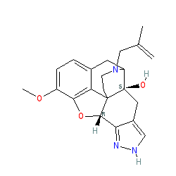 | SMILES | C=C(C)CN1CCC23c4c5ccc(OC)c4O[C@H]2c2n[nH]cc2C[C@@]3(O)C1C5 |