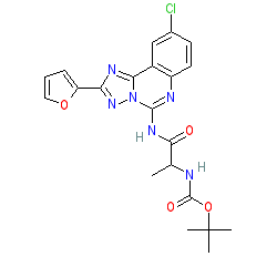 | SMILES | CC(NC(=O)OC(C)(C)C)C(=O)Nc1nc2ccc(Cl)cc2c2nc(-c3ccco3)nn12 |
