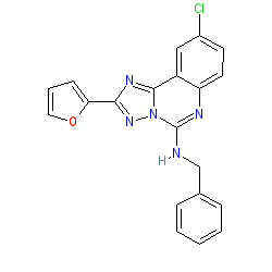 | SMILES | Clc1ccc2nc(NCc3ccccc3)n3nc(-c4ccco4)nc3c2c1 |