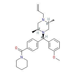 | SMILES | C=CCN1C[C@H](C)N([C@H](c2ccc(C(=O)N3CCCCC3)cc2)c2cccc(OC)c2)C[C@H]1C |