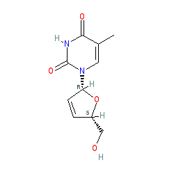 | SMILES | Cc1cn([C@H]2C=C[C@@H](CO)O2)c(=O)[nH]c1=O |