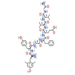 | SMILES | Cc1cc(O)cc(C)c1C[C@H](N)C(=O)N[C@@H](Cc1ccc(O)cc1)C(=O)N[C@H](C)C(=O)N[C@@H](Cc1ccccc1)C(=O)N[C@@H](CCC(=O)O)C(=O)N[C@H](C(=O)N[C@H](C(=O)NCC(N)=O)C(C)C)C(C)C |
