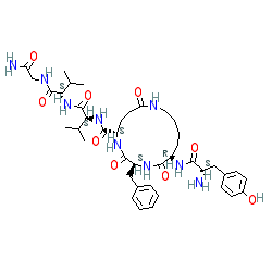 | SMILES | CC(C)[C@H](NC(=O)[C@@H]1CCC(=O)NCCCC[C@@H](NC(=O)[C@@H](N)Cc2ccc(O)cc2)C(=O)N[C@@H](Cc2ccccc2)C(=O)N1)C(=O)N[C@H](C(=O)NCC(N)=O)C(C)C |