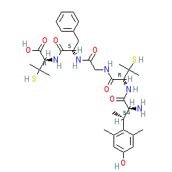 | SMILES | Cc1cc(O)cc(C)c1[C@H](C)[C@H](N)C(=O)N[C@H](C(=O)NCC(=O)N[C@@H](Cc1ccccc1)C(=O)N[C@H](C(=O)O)C(C)(C)S)C(C)(C)S |