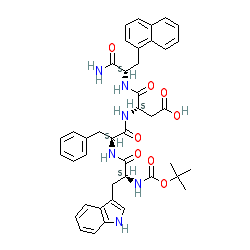 | SMILES | CC(C)(C)OC(=O)N[C@@H](Cc1c[nH]c2ccccc12)C(=O)N[C@@H](Cc1ccccc1)C(=O)N[C@@H](CC(=O)O)C(=O)N[C@@H](Cc1cccc2ccccc12)C(N)=O |
