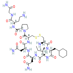 | SMILES | CC[C@H](C)[C@@H]1NC(=O)[C@H](CC2CCCCC2)NC(=O)[C@@H](N)CSSC[C@@H](C(=O)N2CCC[C@H]2C(=O)N[C@@H](CCN)C(=O)NCC(N)=O)NC(=O)[C@H](CC(N)=O)NC(=O)[C@H](CC(N)=O)NC1=O |