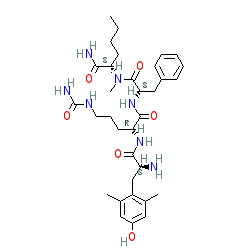 | SMILES | CCCC[C@@H](C(N)=O)N(C)C(=O)[C@H](Cc1ccccc1)NC(=O)[C@@H](CCCNC(N)=O)NC(=O)[C@@H](N)Cc1c(C)cc(O)cc1C |